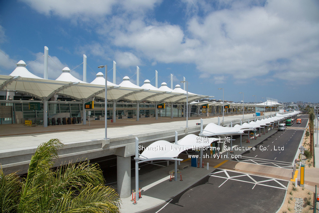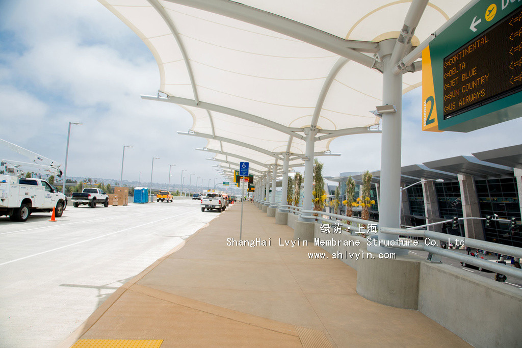 3. 永久性性膜材,使用年限30年以上。對太陽能的反射率高,所以熱吸收量很少。即使在夏季炎熱的日光的照射下室內(nèi)也不會受太大影響。正是因為這種劃時代性的膜材料的發(fā)明,才使膜結(jié)構(gòu)建筑從人們想象中的帳篷或臨時性建筑發(fā)展成現(xiàn)代化的永久性建筑。