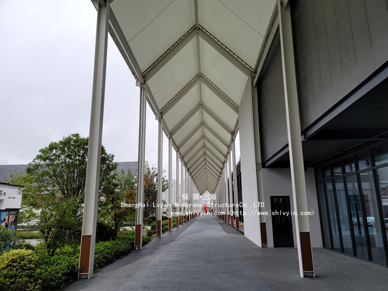 位于寧波文創(chuàng)港規(guī)劃運(yùn)河區(qū),架起了一處膜結(jié)構(gòu)長(zhǎng)廊,采用進(jìn)口PTFE膜材: